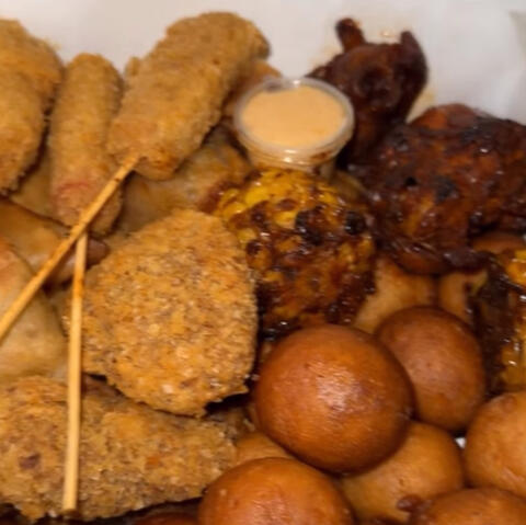 10 Springroll | 10 Moneybag | 10 Turkey BBQ | 10 Gizzard | 10 Shish Kebab | 10 Grilled Sausage | 10 Fish In Batter | 10 Snail Kebab | 10 Fantail Praw | 40 Puff Puffs | 40 Mosa